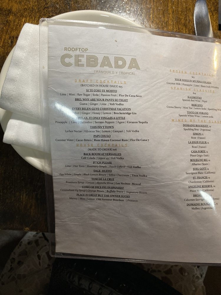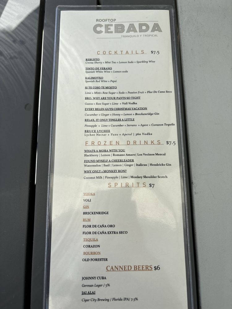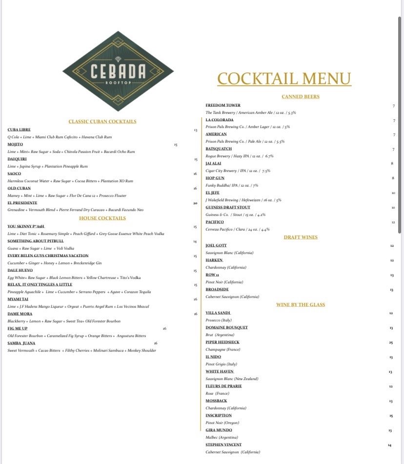Welcome to Cebada Rooftop, a culinary gem in Coral Gables that specializes in seafood with an innovative twist. Nestled at 124 Giralda Ave, this vibrant rooftop eatery offers an exquisite menu that highlights fresh ingredients and creative combinations.